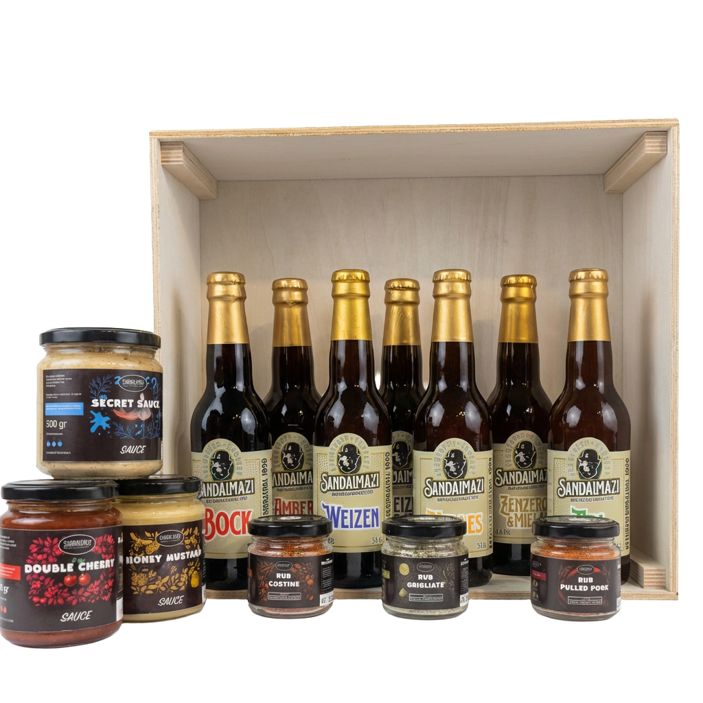 Il kit definitivo per il BBQ: birre miste da abbinare, rub pensati per ogni taglio e salse super golose per chiudere il cerchio tra affumicato, speziato e dolce.